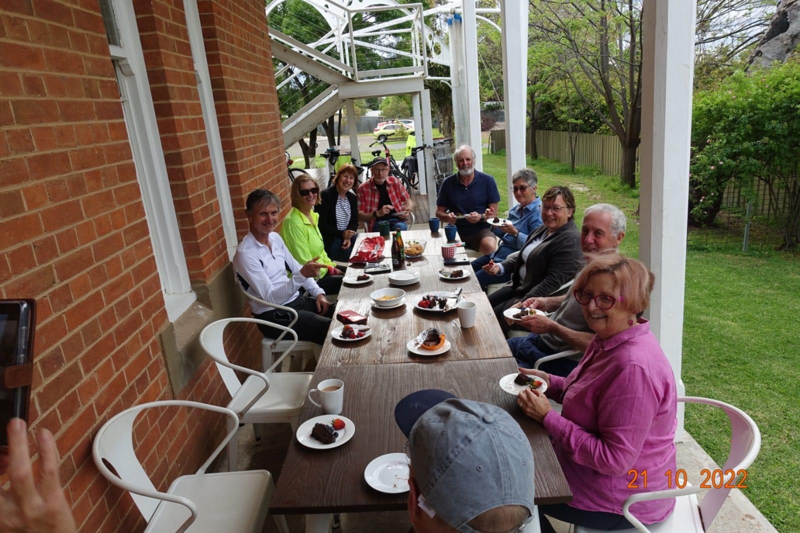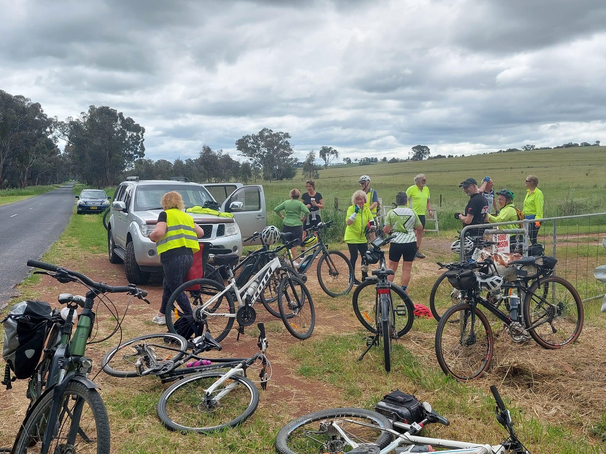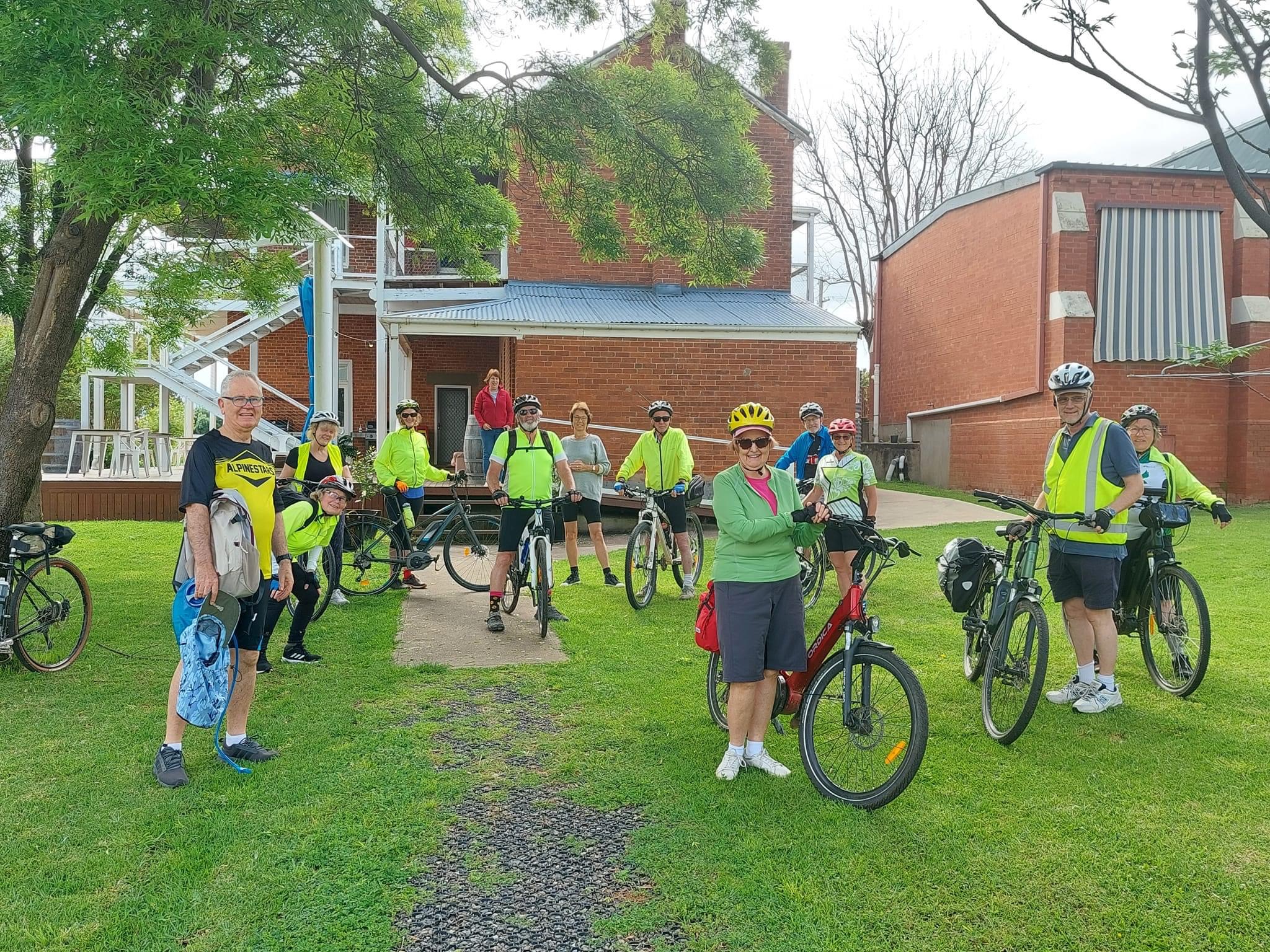 A large cycling group visiting Canowindra!