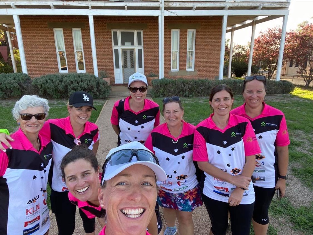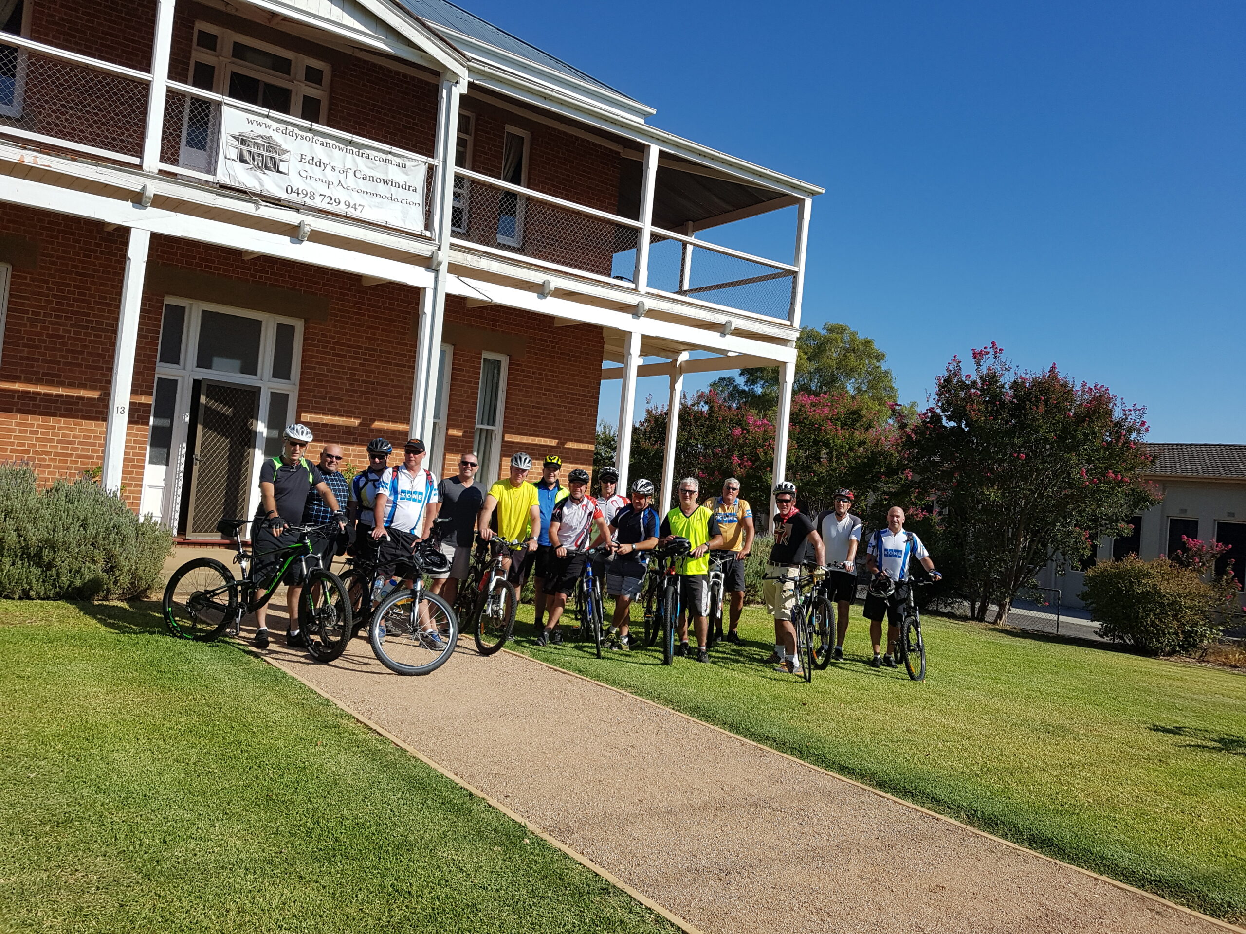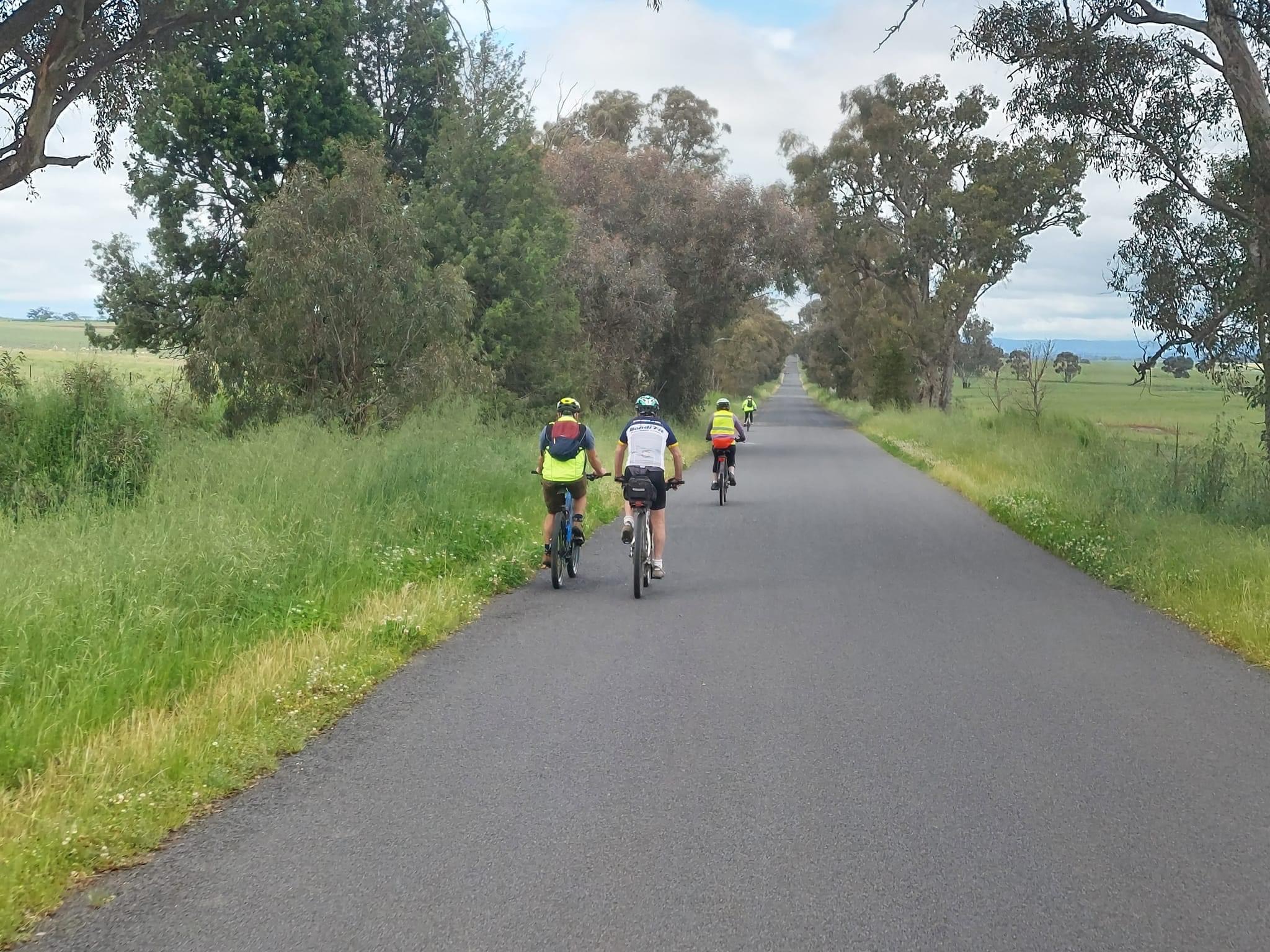 A large cycling group visiting Canowindra!